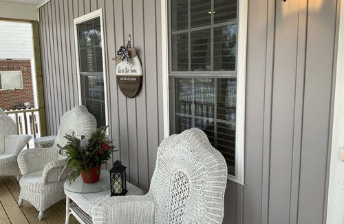 New home, large front porch with river view, quartz kitchen countertops, kitchen table seats 6, and family room. Comfortable and quiet. Rest and enjoy this beautiful home while enjoying the nearby river..