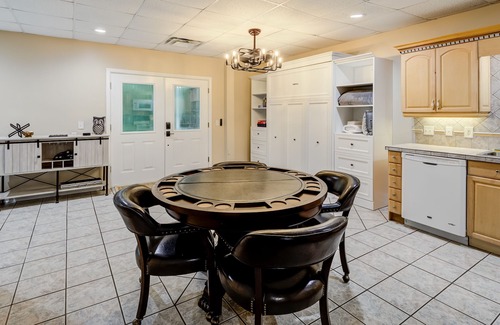 inside, get your fill of friendly competition in the game room equipped with a pool table, ping-pong, a poker table, and pac-man multi-arcade, or experience cinema-style viewing in the six-seater home theater featuring electric recliners and a massive smart tv A full kitchen on the lower level pairs well with the grill for outdoor dining or provides a convenient prep space for happy hour appetizers. The main-floor living area showcases comfortable seating for casual downtime, plus a smart TV for added entertainment. The main kitchen comes well-equipped with all the major appliances and utensils for family mealtime. Dining options include an eat-in table and a separate dining room. The home is equipped with a chair lift to add accessibility. The basement has a step free entry - can access through the second driveway and utilize the chair lift to access main level.