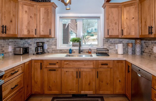 Located in a quiet residential neighborhood, enjoy the peace and tranquility of the outdoors while being close to the shopping outlets, restaurant and year-round activities of downtown North Conway and the Mount Washington Valley. Pets negotiable, inquire with the owner. With 120' of private river frontage on the banks of the Saco River, this waterfront house features an open concept with 4 bedrooms, 3.5 baths and can sleep 8. Features one of best deep water swimming holes on the Saco right in our backyard! Enjoy the tranquility of the outdoors while being close to the shopping outlets, restaurants and year-round activities of downtown North Conway and the Mount Washington Valley. Conveniently located just minutes from the renowned Fryeburg Fair! Private water access from the backyard and views of the river from most every room. The beauty of the river extends through all four seasons and is fun for the whole family. From fishing, swimming and paddling in the summer, beautiful foliage in the fall, skiing and boarding in the winter and spring, this home has it all. High cathedral ceilings and an open main level make for a wonderful chance to spend time family and friends. This house also features a fireplace, Roku, wi-fi, gas grill and fully renovated kitchen (spring '23) equipped with a gas stove, coffee maker and dishwasher. Large, wrap-around deck with hot tub and screened-in porch promotes peaceful outdoor enjoyment for all ages. Also featuring a lower level with a bonus sleeping room, tv and pool table. Walk-out to the backyard and stairs to the water (during warm summer months - install and removal date is always TBD pending weather and river levels). Spend your next vacation on the Saco River! This home is a not a party house and there is a zero tolerance policy for failing to adhere to the house rules. We are in a quiet residential neighborhood and our neighbors are important to us. To ensure a peaceful stay for all, the home features NoiseAware monitors as well as a video camera in the backyard.