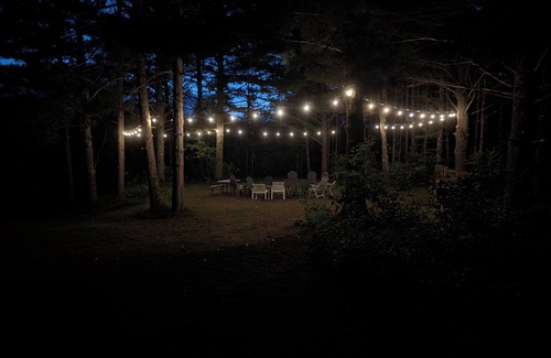 after a day of adventure, unwind around the cozy firepit tucked into the pine trees, sparkling with ambient string lights just steps from the water’s edge Challenge your friends to a fun game of cornhole or simply relax and enjoy the river views. fishing enthusiasts, you're in for a treat! the wisconsin river here is rated a1 for musky fishing—bring your poles or hire a local guide for the catch of a lifetime!