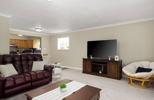 your private riverside playground, kayak from the backyard, soak in the hot tub under the stars, battle it out in the garage game room, or grill by the fire pit With room for 18 guests, two full kitchens, a basketball court, playground, and more, this is where unforgettable memories are made. Relax hard. Play harder..