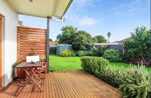 Relax with the extended family at this peaceful property, with a large secure garden for you and your pets to enjoy. Wander down to the river for coffee from Bombora and head to the adjacent playground or club for a round of golf. It's an easy walk to the Wharf, or into Goolwa, or a quick drive (or longer walk) to Goolwa Beach or the Barrage.
