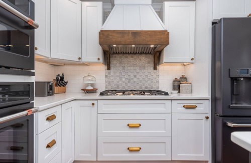 as you continue into the house, you will find yourself in the living room that opens into the dining space The living room has a sprawling sectional, marble topped coffee table, 65” HD TV and fireplace. You will enjoy family/group time in this space for playing games, watching TV or just hanging out! The dining room provides seating for 8-10 with a console table that can be used for serving meals prepared in the gourmet kitchen.