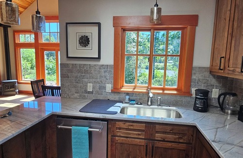 This riverside guest house offers privacy, comfort, the beauty of the changing seasons and proximity to many McKenzie River attractions. It is a lovely haven for a personal retreat, romantic weekend, getaway with friends or can serve as a beautiful rural home base while exploring wilderness areas or adventures in Eugene/Springfield to the west and Sisters or Central Oregon to the east. Settle in, relax, refresh and be inspired by the river, a symbol of the great flow of Life itself.