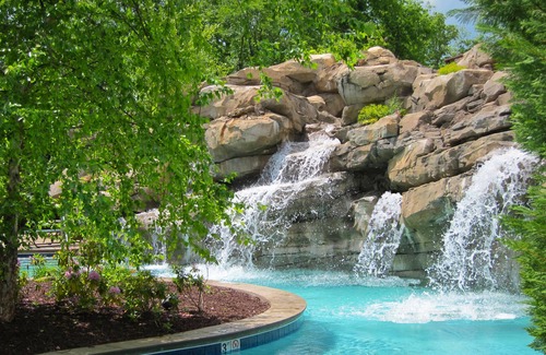on the resort grounds, you’ll find a heated, 300-foot lazy river that’s perfect for kids and adults alike to play in (inner tubes are provided by the resort) Soak up the sun on one of the lounges in the beautifully landscaped pool area, or relax with a book on the sun deck overlooking the Little Pigeon Forge River. Afterward, take a walk on the serene, sun-dappled pathway running alongside the river. Feeling weary? The resort’s day spa is the perfect place to rejuvenate yourself with a massage or facial. The resort also offers a fitness center, barbecue area, kids’ playground, and game arcade.