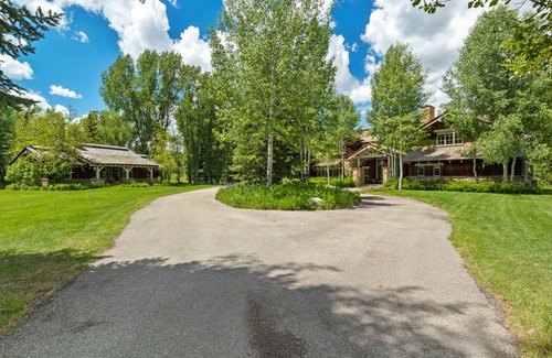 after you turn into the driveway, you will drive past one of the home's ponds, and immediately notice the charm of this spacious home Upon entering the front door, the amazing views of Rendezvous Mountain can be seen through the floor-to-ceiling windows. Once you can peel your eyes away from the magnificent views, the unparalleled luxuries of the home will start to take center stage.