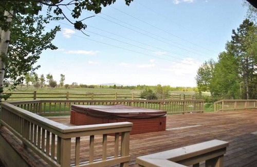 the expansive back deck will unquestionably be a highlight of this wonderful property Complete with a large, gas BBQ grill and private hot tub and surrounded by a wonderfully manicured lawn and babbling brook (during summer months) the comfort of this space is outdone only by the breathtaking views. Grazing cattle and native wildlife are the only neighbors in sight on the bordering and undeveloped Snake River Ranch giving the home a unique sense of privacy to go along with the unobstructed views of the majestic peaks of the Teton Range. This exceptional location will inspire your inner adventurer with one glance across the vast landscape as well as your inner romantic under brilliant alpenglow sunsets! At the end of the day, take some time to relax on the deck or soak in the hot tub and reflect upon your experiences exploring one of the last vestiges of a one-time very wild “Wild West.”