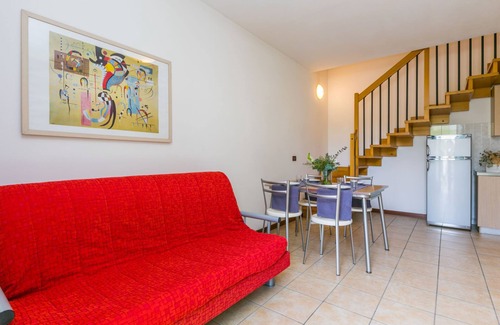 "robinia/pinetine", 2-room apartment 42 m2 on 2 levels Practical furnishings: living/sleeping room with 1 double sofabed, dining table and satellite TV. Exit to the terrace. Kitchenette (4 gas rings, freezer, electric coffee machine). Upper floor: 1 double bedroom. Exit to the balcony. Shower/WC. Air-conditioning, forced-air heating. Small balcony, terrace roofed. Terrace furniture. Facilities: safe, baby cot for up to 2 year olds (extra). Parking (1 car). it027005c2qjte3pyk