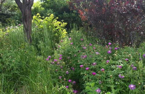 a central living, dining and kitchen area features a wood burning stove plus a kiva fire place to snuggle up to An expanse of windows open to two walled courtyards and an open sitting area shaded in the spring and summer by the colorful foliage of native trees and the brilliant blooms of purple aster, hollyhocks, purple sage and many more. Each of the two bedrooms and baths, located on either side of the common area, includes a top quality king sized bed with all cotton sheets as well as cozy down comforters. Off of the southern patio, a courtyard has a two- person hot tub to soothe aching muscles and, on a clear night, offers a planetarium-like view of the starry sky, undiminished by the city lights of Taos.