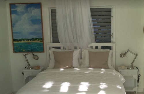 this villa includes a queen-sized bed with a private bathroom, caribbean breeze instead of ac and outdoor kitchen terasse with bbq Renting a car is best and safe the photos of the street address to get your way here..