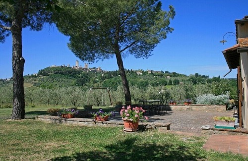 the house is an oasis of peace and tranquillity, surrounded by a very well kept garden and with stunning view over the famous towers of san gimignano