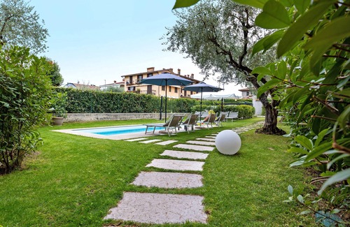 at le logge del garda, in san felice del benaco, you can make use of shared facilities such as a covered terrace, a garden, and an outdoor pool Street parking is available. Pets are allowed for an additional fee. However, events are not permitted on the property.