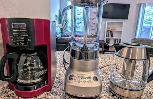fully equipped kitchen with everything you will need for cooking, including drip coffee maker and smoothie machine if we don´t have it, we´ll get it!