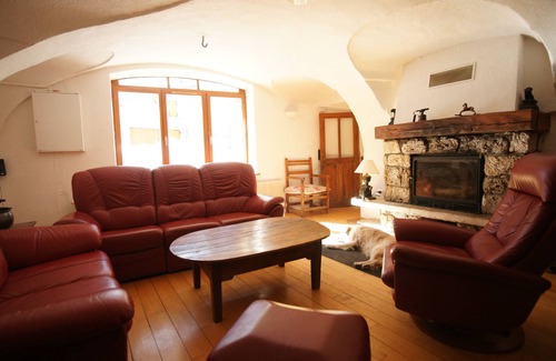-a vaulted living room of 26 m² with a large south facing bay window, 1 tufa stone fireplace (wood is provided), 2 sofa + 2 armchairs, 1 coffee table, 1 40 "hd tv with usb and hdmi connection, home cinema