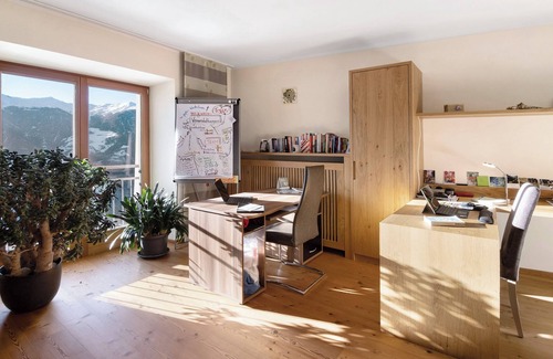 the mairhof flow farm at 1,350 meters above schluderns offers you an incomparable view of the ortler and the stelvio pass This traditional mountain farm is the ideal place for a relaxing break. The modernly furnished rooms offer mountain views. You have access to a shared kitchen, a flower garden, a chapel meadow, children's toys, a washing machine, and books. Bicycles can be safely stored in the barn, and one e-bike is available. We produce jam and syrup, and the eggs come from our own chickens. The Gschneirer Waalweg starts directly at the farm, where you can stroll along the water in the shade of the trees. There are six parking spaces. Pets are allowed, and events are possible upon request. The accommodation is accessible by car, motorcycle, or bicycle. Cleaning service and linen change are available on site for an additional fee.