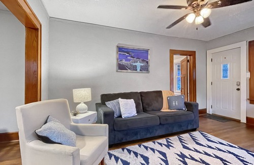 Our 4BR residence rests in a tranquil neighborhood on a corner lot with a HUGE yard, near Drake and a quick drive to downtown. A perfect spot to embrace Des Moines' offerings while relishing serenity at home. Updated kitchen (with dishwasher), dining, 4 cozy bedrooms (3 bedrooms on the main level), living room with hide-a-bed, and a welcoming front porch. Added conveniences include a smart TV and WiFi.