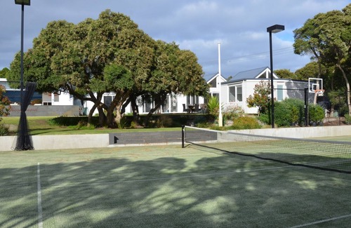 light filled beach retreat featuring 2 large living areas, extensive decking, large outdoor table and landscaped gardens Huge solar/gas heated pool and spa ( extra cost for gas pool heating), pool house, table tennis and tennis court.
