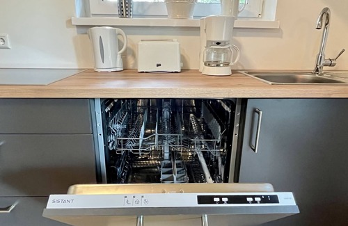 "rothüsli 15", 4-room house 80 m2 Spacious and bright, renovated in 2023, beautiful and cosy furnishings: large living/dining room with satellite TV (flat screen), wood-burning stove. Exit to the garden, to the terrace. 1 double bedroom with 1 double bed (180 cm, length 200 cm). 1 double bedroom with 1 double bed (180 cm, length 200 cm). 1 double bedroom with 1 double bed (180 cm, length 200 cm). Open kitchen (oven, dishwasher, 4 ceramic glass hob hotplates, toaster, kettle, electric coffee machine). Bath/shower, sep. WC. Electric heating, wood heating. Wooden floors. Large terrace. Terrace furniture, box-room. Beautiful view of the garden and the forest. Facilities: logs (free). Internet (WiFi, free). Please note: non-smoking house. A handcart is available for transporting luggage to the house (on foot). car-free holiday village!