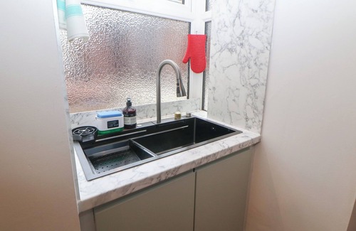 rudyard house consists of a kitchen with an electric oven, induction hob, microwave, fridge/freezer, washing machine, dishwasher, and coffee maker, a dining area with dining seating, and a sitting area with tv The bedrooms consist of a second-floor super-king-size (zip/link), king-size, and adult bunk bed, serviced by a ground-floor bathroom. WiFi, fuel, power, bed linen, and towels are included in the rent. Outside, there is a shared, enclosed, rear garden with patio, barbecue, and furniture, and public car parks available nearby. One well-behaved dog is welcome. Sorry, no smoking. Visit Rudyard House for your next adventure. Note: Steps up into ground-floor bathroom from kitchen. Note: Step up into walk-in shower. Note: Garden shared with property next door. Note: Steps throughout patio in garden. Note: The staircase leading to the second floor is fairly steep and leads you directly into the super-king-size bedroom.