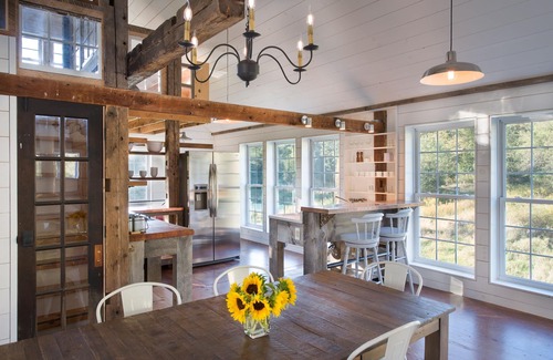 the barn was reclaimed and reconfigured from a tumbledown but picturesque outbuilding The interior was designed, built and furnished by the owners, who live in the farmhouse next door. (See photos for proximity). Lovely open spaces are seamlessly connected with smaller spaces ... which create nooks of privacy as well as places to gather.