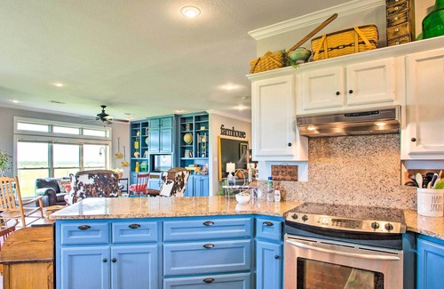 Yee-haw! This colorful family ranch serves as the perfect escape for groups looking for an authentic country experience in the Texas countryside. The fun doesn't have to stay on land, though, with boat launch access to Lake Ray Roberts just 8 miles away and a private pool to use as you please. Other home perks include 2 bedrooms, 2 baths, and whimsical farmhouse furnishings. best of all, you can soak in all that this tioga vacation rental has to offer only 60 miles from downtown dallas!