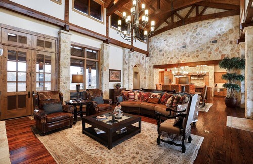 Nestled in the heart of the Texas Hill Country, you will discover a private gated 80 acre estate with a stunning home and pool...the Rusted Roof Ranch. This luxurious retreat was built with the utmost quality and attention to detail. From the exposed trusses in the great room ceiling and the log towers to the extensive rock and wood work, no expense has been spared. The large sparkling pool and waterfall feels like a natural swimming hole. This home will impress the most discerning guests.