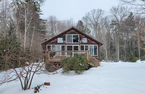 Come relax in this two bedroom with a large sleeping loft rustic cabin located on the shores of Maidstone Lake. Enjoy all the beauty that Maidstone Lake has to offer year round. We have a 200' shallow sandy bottom beach with a 40' boat dock, bring your own boat and tie up for the week or enjoy the kayaks provided for guests. Hear the eerie calls of the numerous loons that nest on the lake or watch the fish swim by with an amazing 30' of visibility. Maidstone is one of the cleanest lakes in the Northeast. In the winter you can ride your snowmobile right out onto the lake and hop on the endless snowmobile trail system. If you've never ridden in Vermont you won't believe what awaits you. The view out the front sun porch is amazing, watch the early morning sunrise or listen to the ice cracking all winter long you won't forget your visit to this perfect piece of paradise..