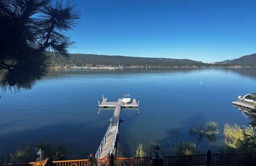 Rustic Elegance meets Mountain Charm: One of the most spectacular locations in all of Big Bear! 5 bedroom & 4.5 bath, located directly on the Lake at Eagle Point, with expansive 180 degree west-facing views of the lake, mountains, and our fabulous year-round sunsets. Features custom Timber Frame log construction with incredible details throughout. Wrap-around view deck flows to a beautiful staircase leading to the lake. 5 Star rustic elegance throughout. With superior craftsmanship in this Lakefront estate, you’ll enjoy Big Bear Lake in grand style. Plus private boat dock available during the summer months (May-October) and the lake is ready for your water adventures on Eagle Point. Bring the family and work remotely from the mountains. Trade the back-to-school blues with the tranquility of breathtaking lake views. The first half of the day you can perch with your laptop looking across the peaceful lake and mountains...the rest of the afternoon is yours to take advantage of California's endless summer style. Plenty of hours left to hike, bike, boat, kayak or just relax dockside under a million stars at night. We have bikes and kayaks, PDFs and more, just ask and we'll find a way to accommodate you.