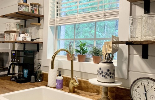 this one-of-a kind cabin boasts a unique, rustic-modern-farmhouse design Paying homage to the Helen/Sautee area, you'll find local art, antiques and unique treasures, paired with the modern touches you expect to find in the finest of Airbnb's.