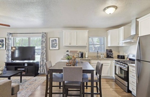 this adorable cabin-style vacation home is full of southern rustic charm! with plenty of character and historic charisma, this place’s cozy interior packs quite the punch with 3 bedrooms and 2 bathrooms Featuring a fully equipped kitchen, a private backyard, and a quiet serene location, this place is perfect for those looking to enjoy McKinney’s iconic tree-lined streets.