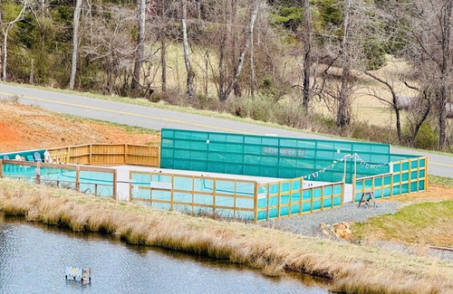 The Mountain View RV site is recommended for 24’ max length. Power and water plus WiFi. No dump facilities. We have plenty of space to welcome you. Shared bathhouse and BBQ area within walking distance to downtown Floyd and all its wonders. Green Acres Resort features a spring-fed swimming pond with its own golden sand beach, pickleball courts, fire pit and bbqs, and a custom bathhouse. Floyd Virginia is the heart of the countryside, we’re excited to welcome you to Green Acres Resort!.