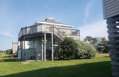 Located at Mile Marker 18 in South Nags Head (pretty quaint compared to Nags Head, Kill Devil Hills, Kitty Hawk, Duck and other areas in the Outer Banks) we are close to all the major attractions (Fish Heads Bar and Grill -1/3 mile away easy walk or bike ride, Pea Island, Jockeys Ridge, Manteo, Oregon Inlet Fishing Center, National Beach w Beach Driving, Bodie Island Lighthouse, Nags Head Woods, Jennette's Pier are all within 6 miles of the house) and hidden away on our quiet street . So you can enjoy the day exploring the OBX and come home to relax in a peaceful environment. We are only 222 yards away from the ocean so you can hear the waves crash on the deck at night. The Backyard connects to the Cape Hatteras National Seashore Parkland for a great view and amazing sunsets! Added Privacy. We leave a starter welcome bag with coffee, sponge, couple trash bags and a couple of rolls of toilet paper and a roll of paper towels are left in kitchen and bathroom. Motion activated security camera is under deck and provides a security view of the front entrance and parking pad.