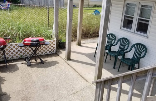 Located on Railroad Ave, 3 blocks from the beach center. 2 minute walk to beach via public boardwalk #3. Off street parking for 2 vehicles. Three bedroom, one bath, modern kitchen. Dining area and living room with cable tv and secure internet access. Washer and Dryer. A/C in living room and master bedroom. Patio in rear with table and seating for 6. Gas grill available for use - requires 1 or 2lb propane cylinder.