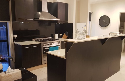 it's a contemporary house with four bedrooms, one master bedroom with ensuite and a large walk-in robe Three bedrooms with built-in robes and central bathroom and toilet. The house is located in point cook close to shopping centres, close to public transport and access to Highway. Parking available. Garage is not included in the booking. High-speed Wi-Fi. Fridge, kitchen,tv, and laundry are free to use . The four bedrooms, four living areas, backyard, spa, in short the entire place is yours to occupy, property is cleaned regularly.