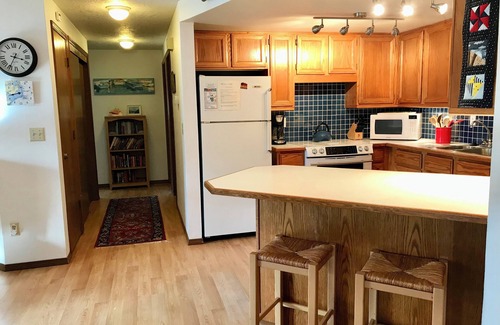 an ideal setting for a family getaway, this first level, end unit provides easy in-and-out access of the complex The hardwood floors, nautical decor, and gas fireplace create a warm, beach-y atmosphere, while the open living and dining areas provide easy, outdoor access to a private and enclosed deck area from two sliding doors. The well-stocked kitchen has all that's needed to whip up those fun, family meals.