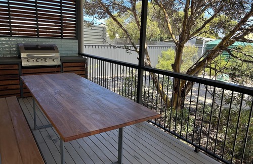 SANDY DAZE is a newly built three-bedroom open plan living home completed in 2024. It offers a great base to explore the southern tip of the Yorke Peninsula with exceptional surf, fishing, walking trails and site seeing. The kitchen opens to the rear deck with an inbuilt BBQ and table with seating for eight. Beyond the deck is the newly landscaped fully fenced native garden including fire pit area. It is a five-minute walk to Willyama beach or Penguin Point and ten-minute walk to the Marion Bay Tavern. 4 Dotterel St is a great place to relax with family and friends..