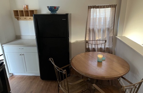 we are pet friendly and offer the following amenities: large smart tv, high speed wifi, window ac, full kitchen with stove, back deck, charcoal barbecue grill, one queen size bed and one queen size sleeper sofa