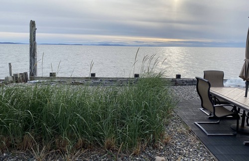 Beautiful beachfront home at Sandy Point Shores, close to Bellingham, WA and Vancouver, BC. Sandy Point Shores is a small beachfront community that boasts incredible sunrises over Mt. Baker and sunsets that could mirror those of the Hawaiian islands. With direct seasonaloceanfront access from the house, enjoy sounds and smells from the Puget Sound, passing ships, orca whales, blue heron and bald eagles flying overhead. Relax inside or outside on the large deck which overlooks Sucia, Matia, Patos and Orcas Islands.