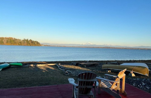 have a dream oceanfront getaway at beautiful lummi bay! relax on the deck or beach as you watch the early golden suncome up over mt baker on a clear morning! take a kayak or the canoe out for a paddle in the waters of lummi bay or just enjoy watching the view change as the tide comes in or goes out!