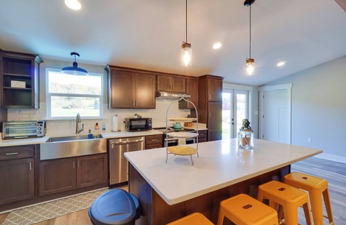 Trade the hustle and bustle of city life for the peaceful farmlands of southern Tennessee! This 3-bedroom, 3-bathroom vacation rental is the perfect place to call home as you venture into Chattanooga and Cleveland for some sightseeing or head into the Smoky Mountains. After fun-filled days, look forward to returning to this gorgeously updated ranch-style house in time to explore the on-site ponds, recline on the porch, or warm up by the fire pit with views of the surrounding working farm.