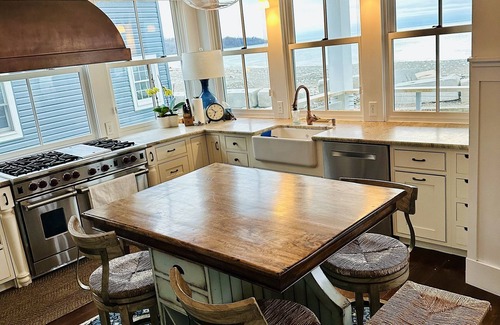 our kitchen is fully stocked with spices, a six burner stove, dishwasher, microwave, and coffee pot You will also have access to three flat screen TV’s, WiFi, beach towels, linens, bath towels, starters for toilet paper and paper towels. Washer and dryer will be accessible for your use as well.