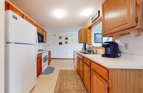 find the season that suits you at this scenic bartlett condo Close to all the best that the White Mountains offer, this three-bedroom home puts you within easy reach of year-round adventure and attractions, from shopping and dining to skiing and hiking. Fantastic mountain views abound from the private balcony, and community features include a seasonal outdoor pool and on-site tennis courts. A plush sectional and smart TV set the stage for casual downtime and family entertainment in the living area. The full kitchen makes home cooking a breeze, and a convenient pass-through window makes it easy to serve up dishes at the dining table set for six. Free WiFi and a private washer/dryer round out the modern home essentials.