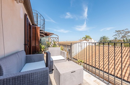 Cozy and modern apartment with terrace, just a few steps from the charming Piazza Magione.The apartment is located on the third floor of a building between Piazza Magione and Via Alloro alla Kalsa and spreads on two levels. The entrance opens onto a hallway, furnished with a desk and chair, which gives access to the master bedroom with a queen-size bed, a modern bathroom with shower, and the stairs leading to the living area. The upper floor houses a large and bright open space furnished with a sofa, a television, a dining table, a fully-equipped kitchen with oven and kettle, and access to the beautiful terrace overlooking the roofs and domes of the center of Palermo. Guests will benefit from the washing machine, iron, air conditioning, heating and wi-fi.*Upon arrival or a few days before arrival it may be required to pay a tourist tax, which varies according to local regulations. You will find your reservation details within the Guest Area of Wonderful Italy.Palermo, one of the most beautiful cities of art in the country and the capital of Sicily, offers plenty of wonderful UNESCO heritage sites that can be visited in the four historic districts of the city. In this regard, tourists can take part in the "Baroque itinerary of Palermo' to visit the main monuments of the city, such as the Church of the Holy Savior, the Church of Santa Maria del Monte Oliveto and the Church of the Conception. The city also offers the opportunity to participate in the "Tour of the Historical Markets of Palermo' which will allow guests to explore the markets of Ballarò and Capo. It doesn’t matter if it’s lunch or snack time, it is strictly required to taste the dishes with your hands only! This tour will also give tourists the opportunity to admire prominent buildings, streets and squares.Palermo central station is 700 m away from the apartment, while Palermo Falcone e Borsellino Airport is 45 minutes drive away..
