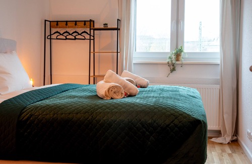 located in neustadt an der weinstrasse, this welcoming apartment lets you experience it all There's convenient onsite parking, so you can leave your vehicle behind and let your feet make short work of the 1-minute walk to Palatinate Forest Nature Park or the 12-minute walk to Galerie ASPEKT. If you're looking to expand your horizons and see other nearby locales, you can catch a train at either a short Neustadt (Weinstr) Central Station, 7-minute walk away, or Neustadt-Böbig Station, 15 minutes away.