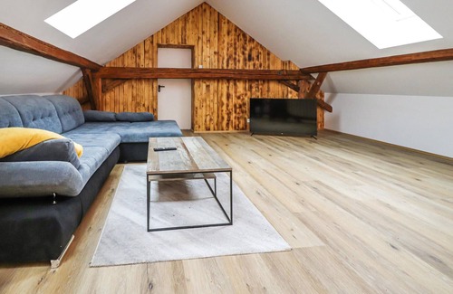 not far from passau and the border with the czech republic, you will find yourself in an apartment full of character with cosy, rustic furnishings The old wooden beam structures have been perfectly integrated into the modern renovated rooms and, together with the high ceilings under the roof, create a lovely atmosphere.