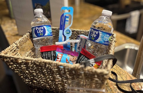 the kitchen is well equipped with pots and pans, utensils, coffee maker, electric tea kettle, ninja blender, toaster and plenty of dishes and storage containers we have also provided coffee and tea along with some creamers and sweeteners for you to enjoy your mornings at the condo before hitting the hiking trails, golf courses or shopping!