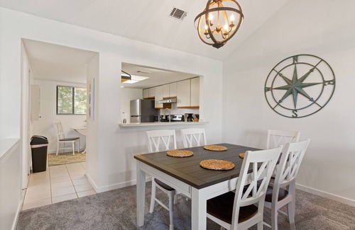 as you step inside this charming 2-bedroom, 25-bath vacation home, you'll immediately be greeted by an inviting atmosphere. The spacious interior features two cozy bedrooms, each adorned with a comfortable queen-sized bed. With two full bathrooms and an additional half-bath, you'll enjoy all the convenience and privacy you need for a rejuvenating stay.