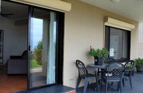 the apartment is large, offers a full kitchen with stove, coffee pod machine, 1 bedroom, bathroom and full private laundry With a double sofa bed in the lounge room, free car park at the door, along with free Netflix and internet. There is a split system air conditioner and ceiling fan in the lounge room. You have your own patio out the front for you to sit with a drink and enjoy the views.