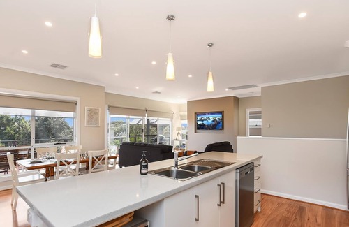 just a minutes walk to the stunning sellicks beach esplanade, this brand new, light, bright and breezy beach house at sellicks beach sets the scene for a relaxing holiday and a lifetime of memories The two-storey, contemporary home, built-in 2016, is beautifully furnished throughout and comfortably sleeps eight, with modern fittings and decor. There are four large bedrooms, three with ceiling fans, built-in robes and queen-size beds, and two generous living spaces both indoors and out. The views from the house are breathtaking, rolling hills on one side and the ocean on the other. its so close to the water you can hear the waves!