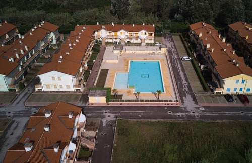 great flat with a shared pool, 600mt from the beach and 200mt from the city center It is located on the first floor + attic (internal stairs in addition to external ones). It consists of a living room with a kitchen, TV (national channels), single sofa bed, two bedrooms with double beds, a bedroom with two single beds and two bathrooms with showers. Amenities: 2-way A/C, 1 parking space, washing machine, small oven or microwave, floor cleaning equipment and tableware cleaning kit. Wi-Fi is available from 24/04 to 30/09. The first supply of bath towels is not included (check below).